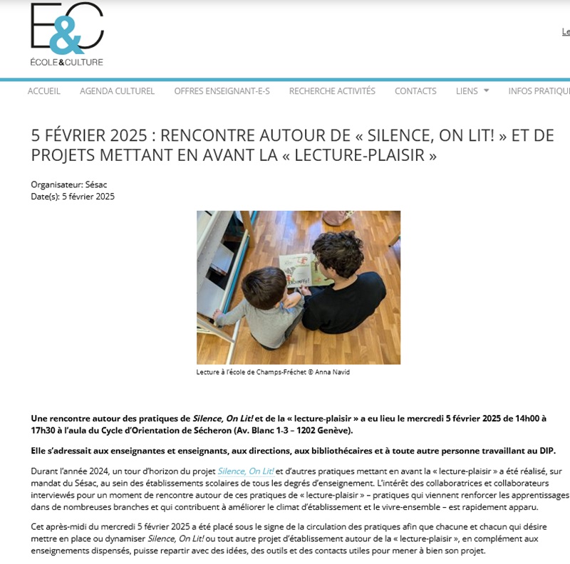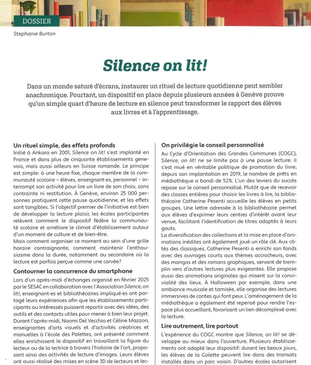 « SILENCE, ON LIT ! … un dispositif en place depuis plusieurs années à Genève »